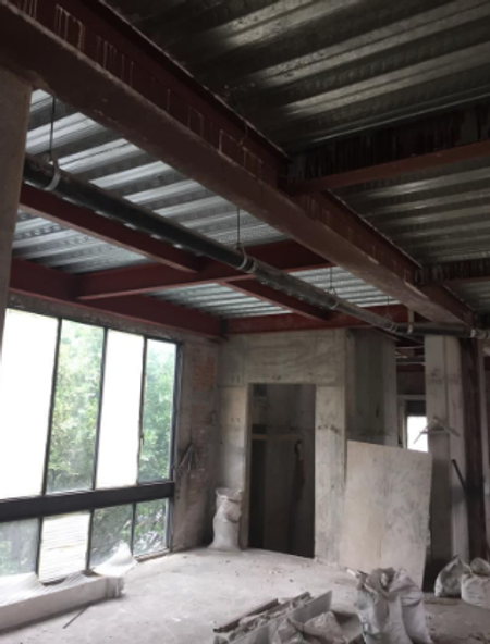 Cisterna de 25,000Lt, elevador, estacionamientos 8 (con posibilidad a 16), estructura de acero y loza, cada piso tiene baños para hombres o mujeres, roof garden y techos altos.