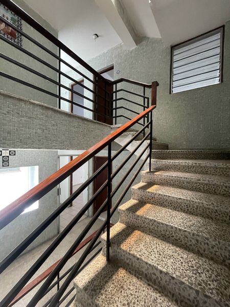instalaciones especiales: cornisa, pretites, cisterna, bomba, barandales en balcones, escalera principal de acceso y cortinas metalicas en planta baja.