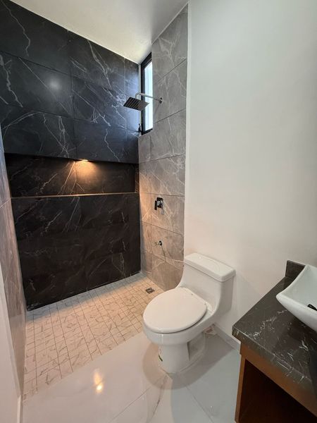Baños con mesetas de mármol Una residencia lista para habitar con diseño de lujo y espacios pensados para la comodidad de toda la familia en el corazón de Temozón Norte.