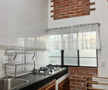 Casa del vigilante con sala, comedor, cocina, baño completo y dos recámaras