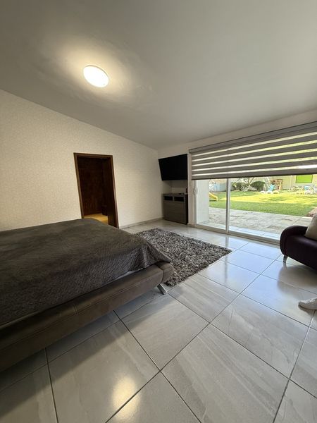 Independiente de la casa, dos recámaras con baño cada una con salida al enorme jardín.