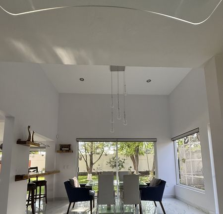 Cocina hermosa con desayunador, estancia muy amplia de sala comedor y un lindo bar con persianas eléctricas.