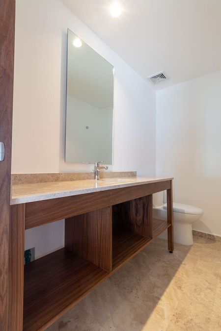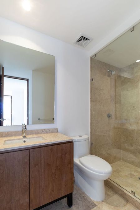 Este departamento posee con 2 recámaras, 3 baños, cocina abierta, amplia sala comedor y un lindo balcón, cuarto y baño de servicio y zona de ropas.