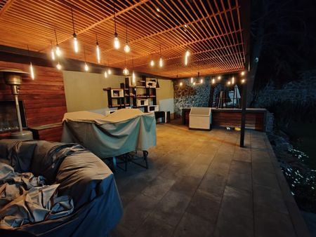 Terraza 120 mts con Asador profesional con Pergola de Madera y con CristalesTemplados