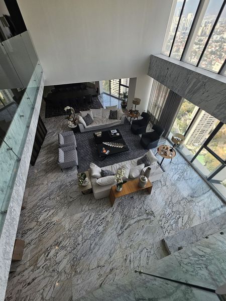 En la parte de arriba un gran family, 3 recamaras cada una con su baño y su vestidor, la principal con doble vestidor, y un piso mas arriba un roof privado con sala, terraza y baño.