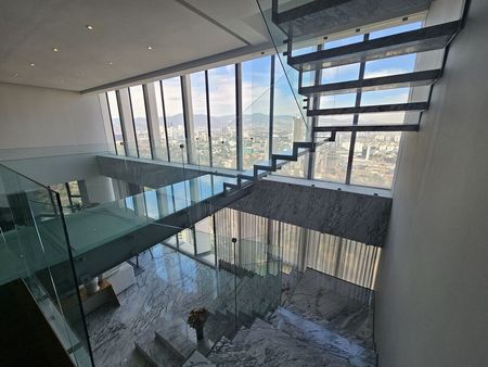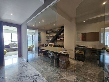 El departamento se distribuye en 2 lindas plantas, la de abajo gran sala comedor con doble altura y una luz natural increíble, cocina, oficina totalmente acristalada, y una sala de descanso espectacular que puede ser family o sala de juegos.