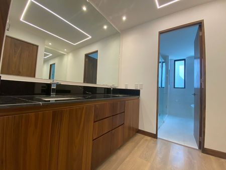 En la segunda planta se encuentra el área de descanso con 3 recamaras, cada una con su baño y closet y la principal además tiene tocador y bañera, un gran walk in closet y acceso a una terraza privada de 11m2.