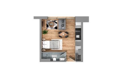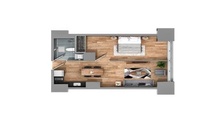 El espacio está diseñado para aprovechar al máximo cada rincón, ofreciendo un ambiente acogedor y fácil de mantener. Ideal para solteros o parejas que valoren la comodidad.