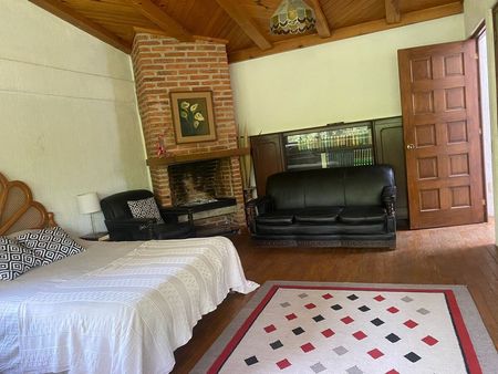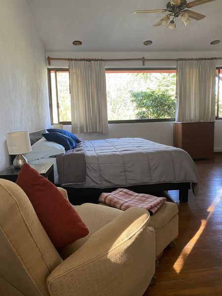 La casa cuenta con 2 recámaras amplias, una de ellas con walking closet y jacuzzi, y la otra, con chimenea y bonita vista al jardín de la propiedad.