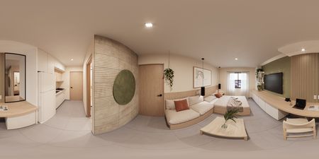 AMENIDADES: Patio Central, terraza con fogateros, spa y estética animal, mirador, cancha polideportiva, gym, muro de escalada, carril de nado contra corriente, alberca recreativa, cine al aire libre, karaoke, coworking y espacio para relajación, meditación y descanso.