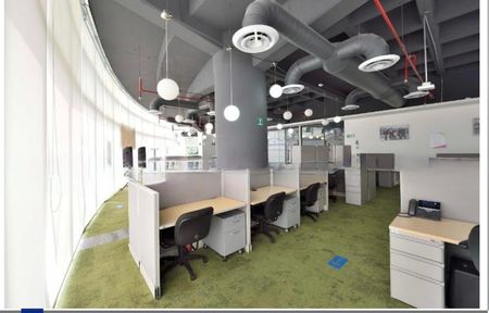 La oficina cuenta con recepción, sala de juntas, varios privados, área de trabajo, área de comida.