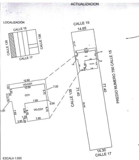 Forma: Regular con paso lateral en "L" que conecta a construcciones secundarias. Construcciones Existentes (según plano):