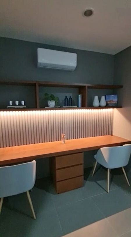* Área de estudio y trabajo vestido con moderno escritorio y equipado con AA