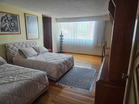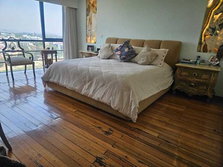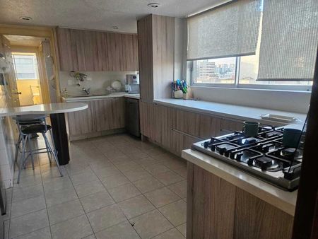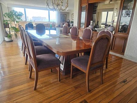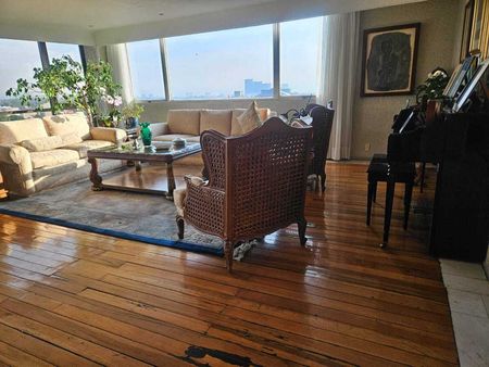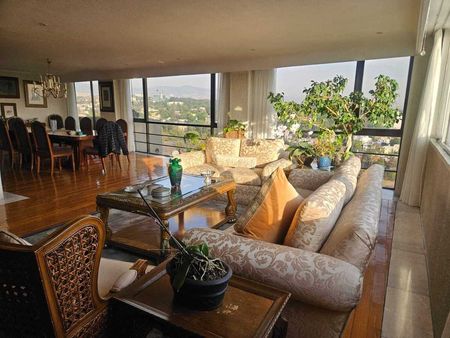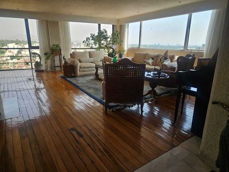 Departamento tipo Penthouse de 420 m2, de un solo nivel cuenta con 3 recamaras cada una con baño completo, vestidor, baño de visitas, sala, comedor, antecomedor, cocina integral, área y cuarto de servicio cuenta con tres lugares de estacionamiento.