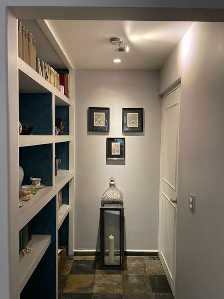 150mts terraza. 2 recámaras con baño y vestidor y opción a tercera recámara en el family, medio baño de visitas, cuarto de servicio con baño, cuarto de lavado, pisos de encino, pisos de laja natural, Cocina de mármol, techos doble altura
