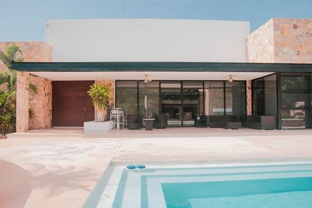Casa en venta con una excelente ubicación al norte de Mérida, la ciudad más segura de Mexico, esta hermosa propiedad cuenta con 2,116.74 m2 terreno, 769m2 de construcción y barda perimetral con piedra artesanal de 3.5 altura.