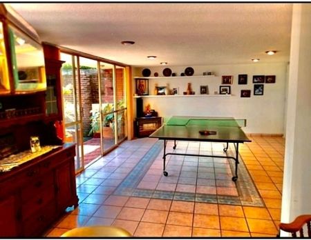 Planta Baja: Recibidor, sala con chimenea, comedor, cocina integral con antecomedor, salón de juegos, terraza, lavandería, bodega, jardín, y estacionamiento para 3 autos.