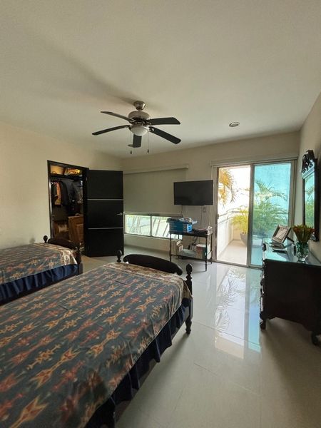 La recámara principal y la secundaria comparten un balcón con vista a la alberca y jardín.