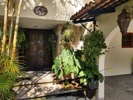 Amplia casa (sin muebles) en esquina rodeada de hermosos jardines dentro del exclusivo condominio de sólo 20 casas "Cañadas de San Fernando" sobre la calle Eva Briseño, Zapopan. A unas cuadras de Av. Patria y Colomos.