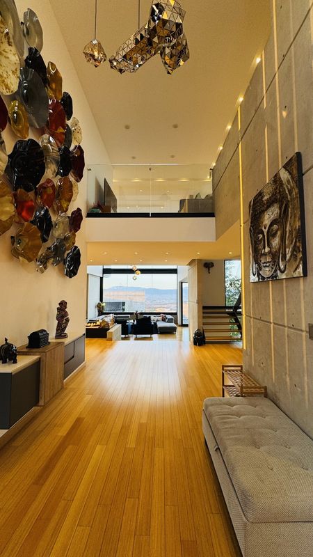 Recámara principal con terraza, baño con tina, doble regadera, vestidor cerrado, mini split, iluminación LED y vistas al valle
