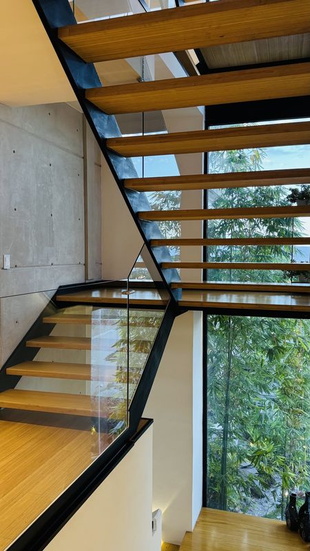 Recámara de visitas con vista al estanque de peces koi y baño completo