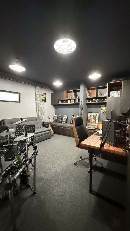 Cochera con piso de epóxico, cisterna de 18,000 l, cuarto acústico