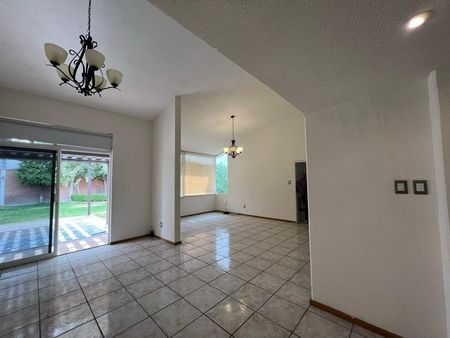 cochera para 3 autos, sala-comedor, cocina integral con alacena, estudio, tres recámaras, 3 .5 baños, área de lavado.
