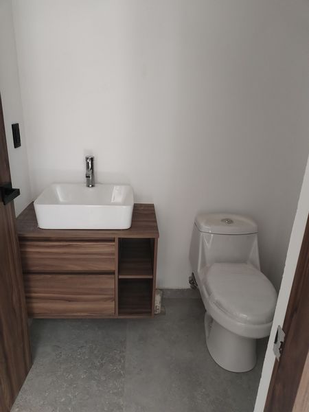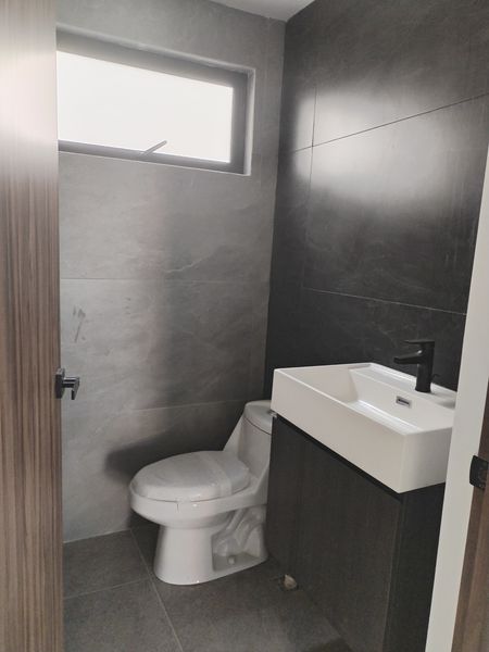 2 Recámaras con baño completo con cancel de cristal templado, ventilación natural, 1 medio baño para visitas, (1 Estudió opciónal), Cocina Integral con barra desayunador ambos con encimera de granito, Estancia Amplia, Área de Servicio Integrada, 2 lugares de Estacionamientos independientes