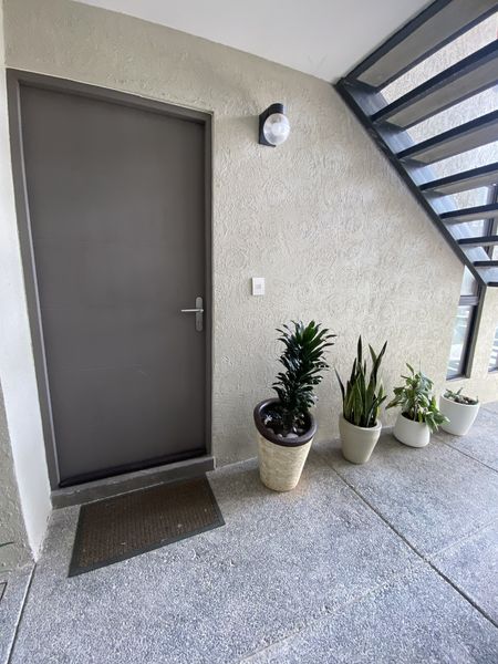 Sala-comedor, amplia cocina con barra de granito y alacena, cuarto de lavado con alacena. 2 recámaras. La principal con vestidor y baño privado con salida al patio con jardincito de pasto artificial. Recámara secundaria con clóset. Baño completo. Sala de TV o amplio vestidor para mayor almacenamiento. Estacionamiento para un auto