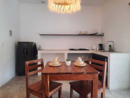 Cuenta con cama King SIZE, sofá cama, mesa de centro, comedor, cocina con