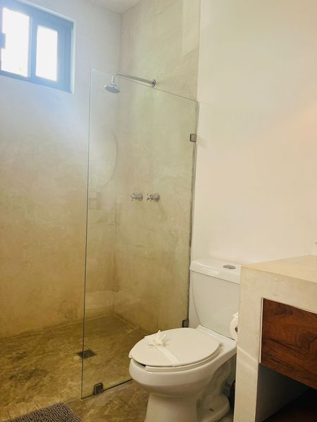 sillas, tarja, ventilador de techo, aire acondicionado, Baño completo, terraza de