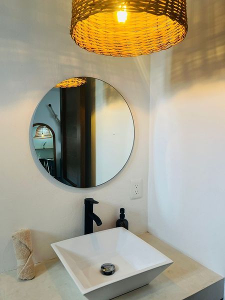 estufa eléctrica, refrigerador, 2 ventiladores, de techo, aire acondicionado, baño