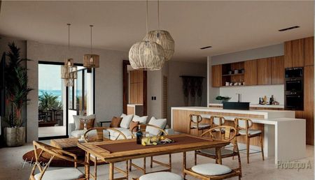 Estos hermosos nuevos departamentos de 2 y 3 habitaciones son perfectos para rentas vacacionales o como su propio hogar en el paraíso. Ofrecen un amplio plano de planta abierta con grandes ventanas que inundan los apartamentos de luz natural. Todas las residencias cuentan con cocina equipada. La sala y comedor llenos de sol se abren a un balcón o terraza privada con vistas panorámicas al mar, al campo de golf o a la selva. Estos departamentos tienen pisos de baldosa y acabados de alta calidad que son duraderos y fáciles de mantener. Se ofrecen a la venta sin amueblar pero equipados con aire acondicionado.