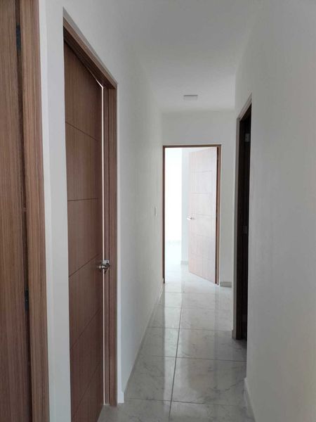 Sala, comedor, cocina integral, área de lavado, baño completo para recámaras secundarias y visitas, 3 recámaras (2 con closet y principal con vestidor y baño completo). 2 lugares de estacionamientos en batería techados.