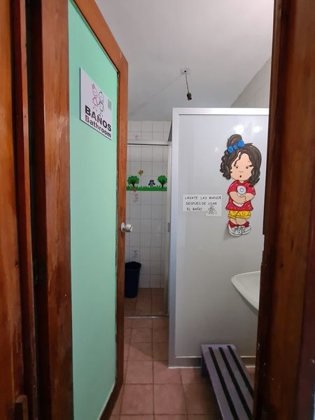 Casa con uso de suelo comercial, 4 baños adecuados para niños y uno para adultos. Cuenta con cocina empotrada y patio de servicio, 3 espacios de estacionamiento y dos oficinas.