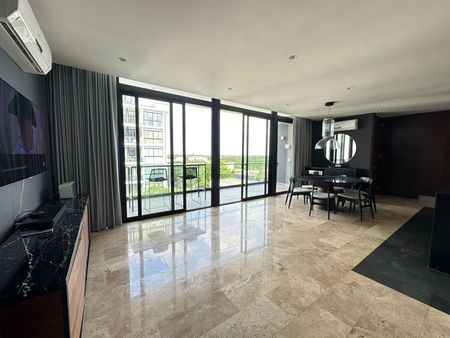 Precioso departamento en venta en La Vista, cuenta con amenidades tales como alberca, carril de nado, jacuzzi, Chapoteadero, gimnasio, salón de usos múltiples, salón de juegos. El departamento tiene tres recámaras, 3.5 baños, sala comedor, cocina integral con cubierta de cuarzo, terraza, cuarto de servicio con baño, estacionamiento techado para dos autos, llega, sistema de control inteligente