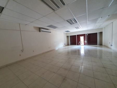 Tiene cortina metálica y puerta de cancelería y cristal interior.