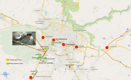 Ubicación de la plaza comercial: Av. Adolfo López Mateos Sur #1450, El Palomar, San Agustín, Jalisco.