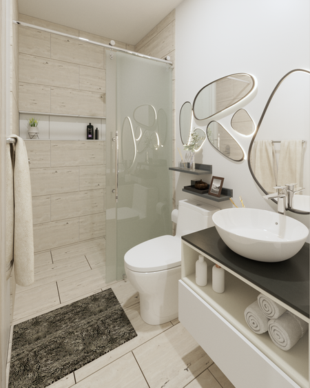 1 Baño completo con extractor de olores (En caso de no tener ventilacion natural) , piso de mármol travertino
