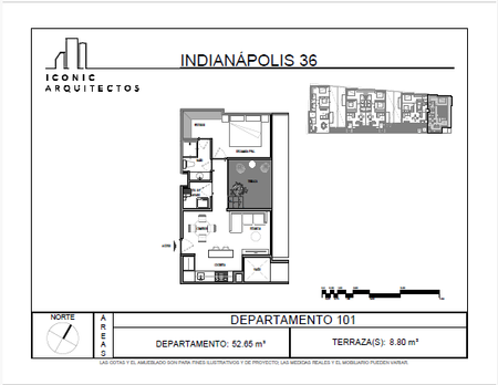Metraje total: 61 m2, terraza de 8.80m2, habitables 52.65m2