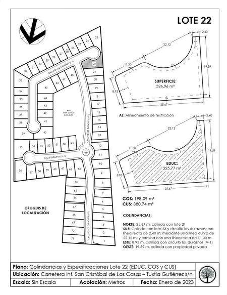 El fraccionamiento es privado, todo bardado con calles adoquinadas, preparación de servicios en cada lote, iluminación con lámparas solares, caseta de vigilancia y en construcción casa club.