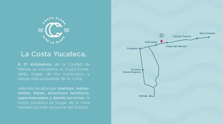 A 21 kilómetros de la Ciudad de Mérida se encuentra la Costa Esmeralda, hogar de los municipios y playas más populares de la costa.