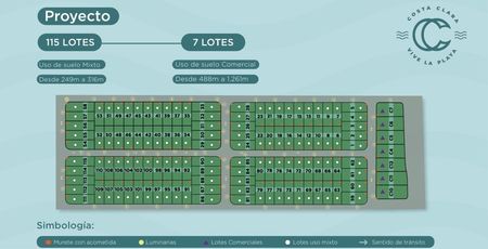 El proyecto se encuentra formado por 115 lotes con uso de suelo mixto desde 249m2 a 316m2 y 7 lotes con uso de suelo comercial desde 488m2 a 1261m2.