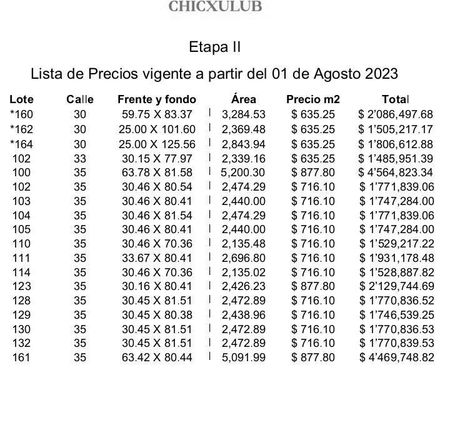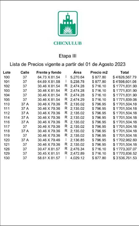 Los lotes empiezan desde $645 pesos el m2 a $880 pesos por m2 depende de la ubicación y de las bondades del terreno.