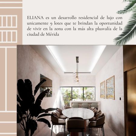 Eliana: Un exclusivo desarrollo de solo 9 lotes residenciales ubicados estratégicamente a una cuadra de la avenida principal de Temozón Norte, en la zona de mayor plusvalía en Mérida, donde el diseño y la ubicación crean el entorno ideal para tu nuevo hogar.