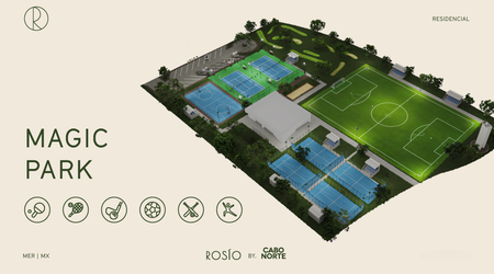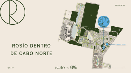 Rosío, un proyecto exclusivo en Cabo Norte que ofrece 55 lotes desde 375 m2 hasta 750 m2. Disfruta de un parque central de más de 4,600 m² con vistas y acceso directo a lagos y su