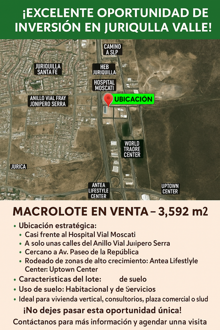 MACROLOTE EN VENTA – 3,592 m² Juriquilla Valle, Querétaro