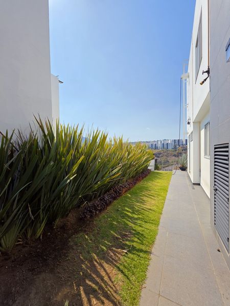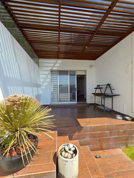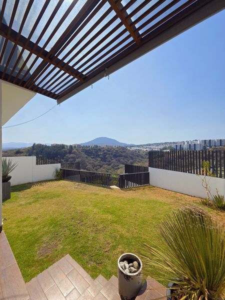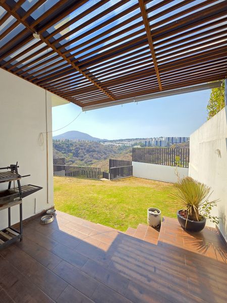 El jardin cuenta con increible vista arbolada, su ubicación permitirá siempre esta vista ya que enfrente es zona federal, este jardín se divide en 2 partes, area plana con terraza y pergola y otra pequeña terraza delimitada con una pequeña reja para las mascotas en caso de tener reunión.
