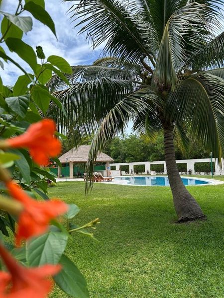 Con amenidades distribuidas en grandes espacios, con dos albercas con palapa, salón de fiestas, área de mascotas.