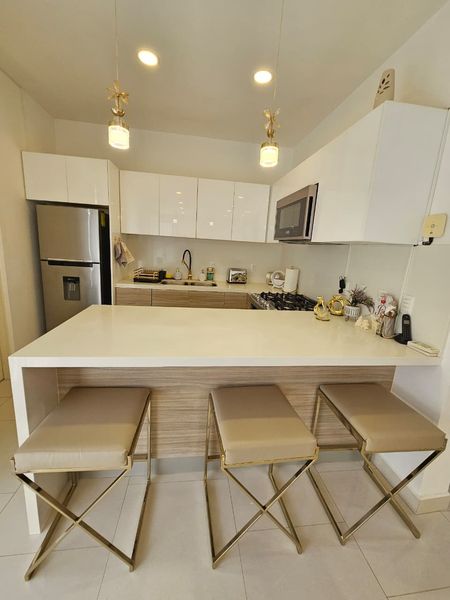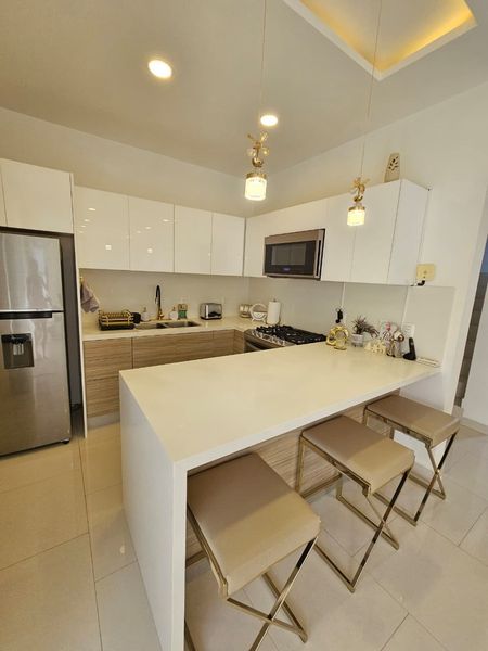 Ubicado en uno de los desarrollos más exclusivos de la zona, este elegante condominio en Duara combina diseño contemporáneo, comodidad y amenidades de primer nivel. Con tres amplias recámaras y dos baños, esta propiedad está pensada para ofrecerte un espacio acogedor y funcional, ideal para familias o quienes buscan amplitud. La cocina está completamente equipada y se integra perfectamente con el área social, que se abre hacia una terraza privada perfecta para disfrutar del clima cálido. El desarrollo cuenta con áreas comunes con alberca, estacionamiento cerrado, seguridad 24/7 y un entorno tranquilo y bien cuidado. La renta mensual es de $2,300 USD, y representa una excelente opción para quienes buscan vivir con estilo y comodidad en una comunidad segura y moderna.